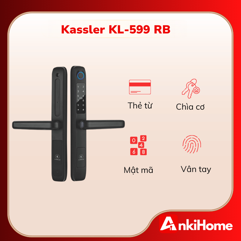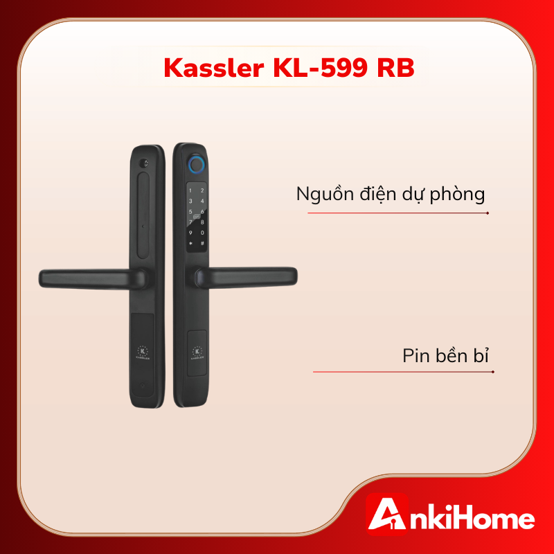 Kassler KL-599 RB là mẫu khóa điện tử cao cấp, hội tụ hài hòa giữa thiết kế thẩm mỹ và công nghệ bảo mật tiên tiến. Với màu Đen sang trọng, sản phẩm mang đến diện mạo tinh tế, bền bỉ và đặc biệt phù hợp với các hệ cửa nhôm đố hẹp.