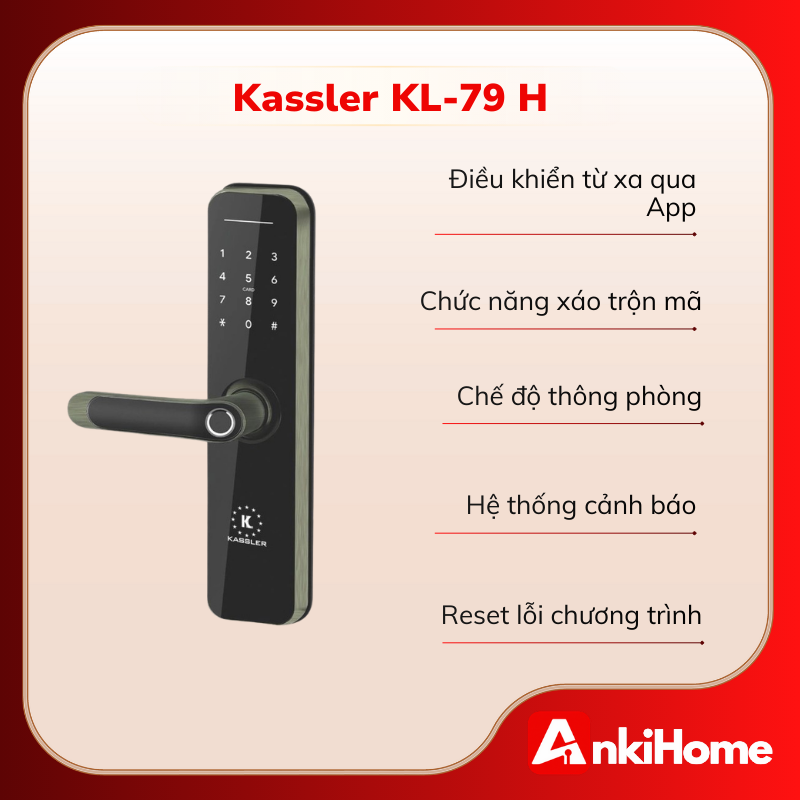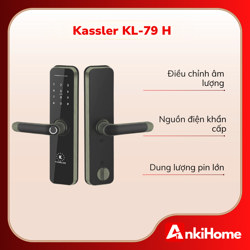 Kassler KL-79 H là dòng khóa hiện đại được nhiều gia đình và công trình cao cấp lựa chọn, và AnkiHome tự hào là đơn vị cung cấp sản phẩm này với mức giá cạnh tranh cùng dịch vụ đồng bộ, chuyên nghiệp.